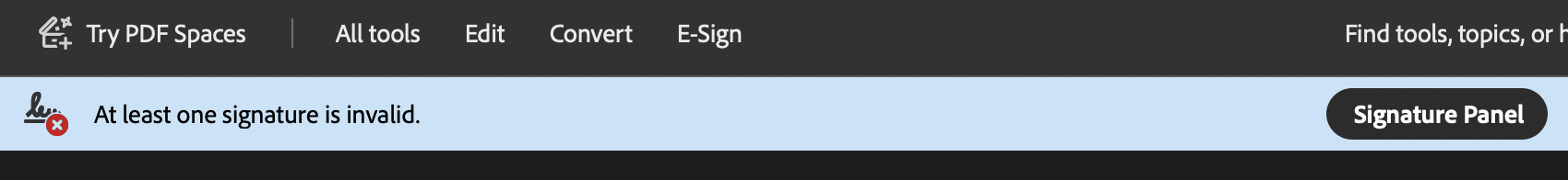 Yes, I’m also seeing the error in Adobe Acrobat. Could you help to identify what exactly is causing the issue—such as what might be breaking the signature validation or if there’s an unsupported feature? I believe the Topaz Gem signature might be using SHA-1, which could be contributing to the problem.
