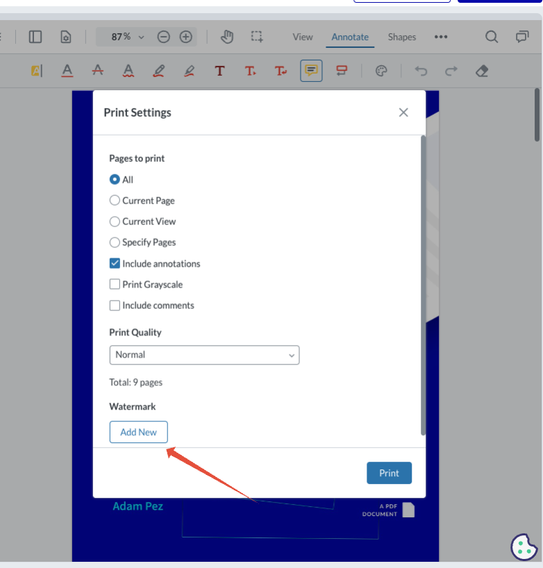 I want to implement the functionality for watermark, where user can add new watermark from the webviewer UI.