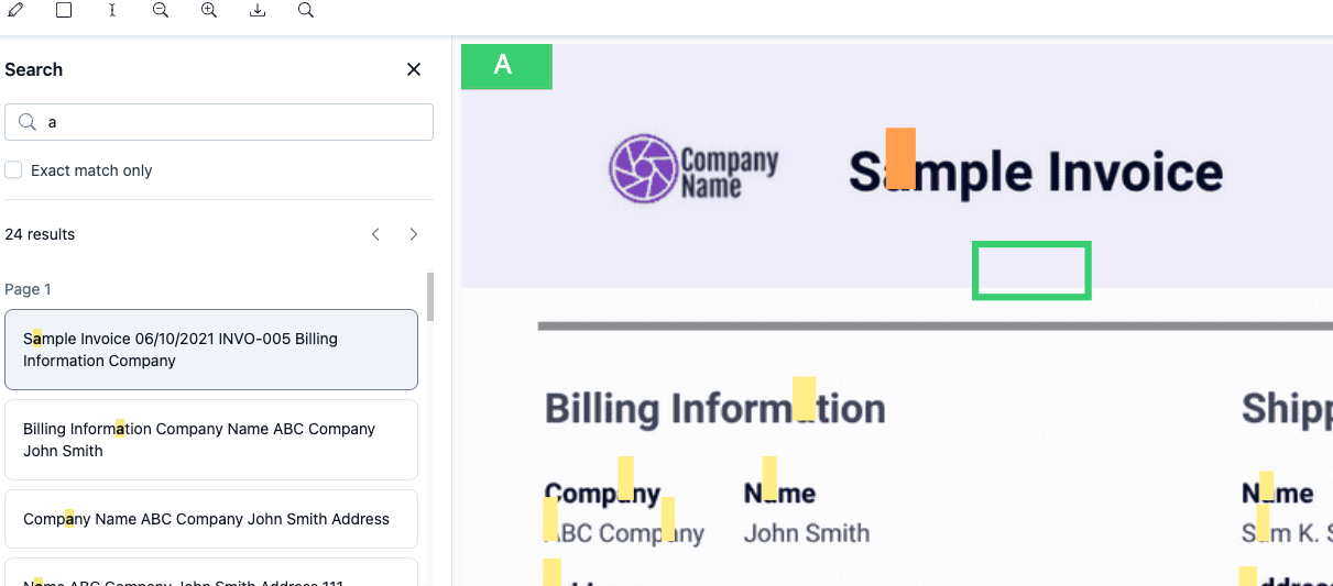 The search highlights appear, then shortly after the labels disappear