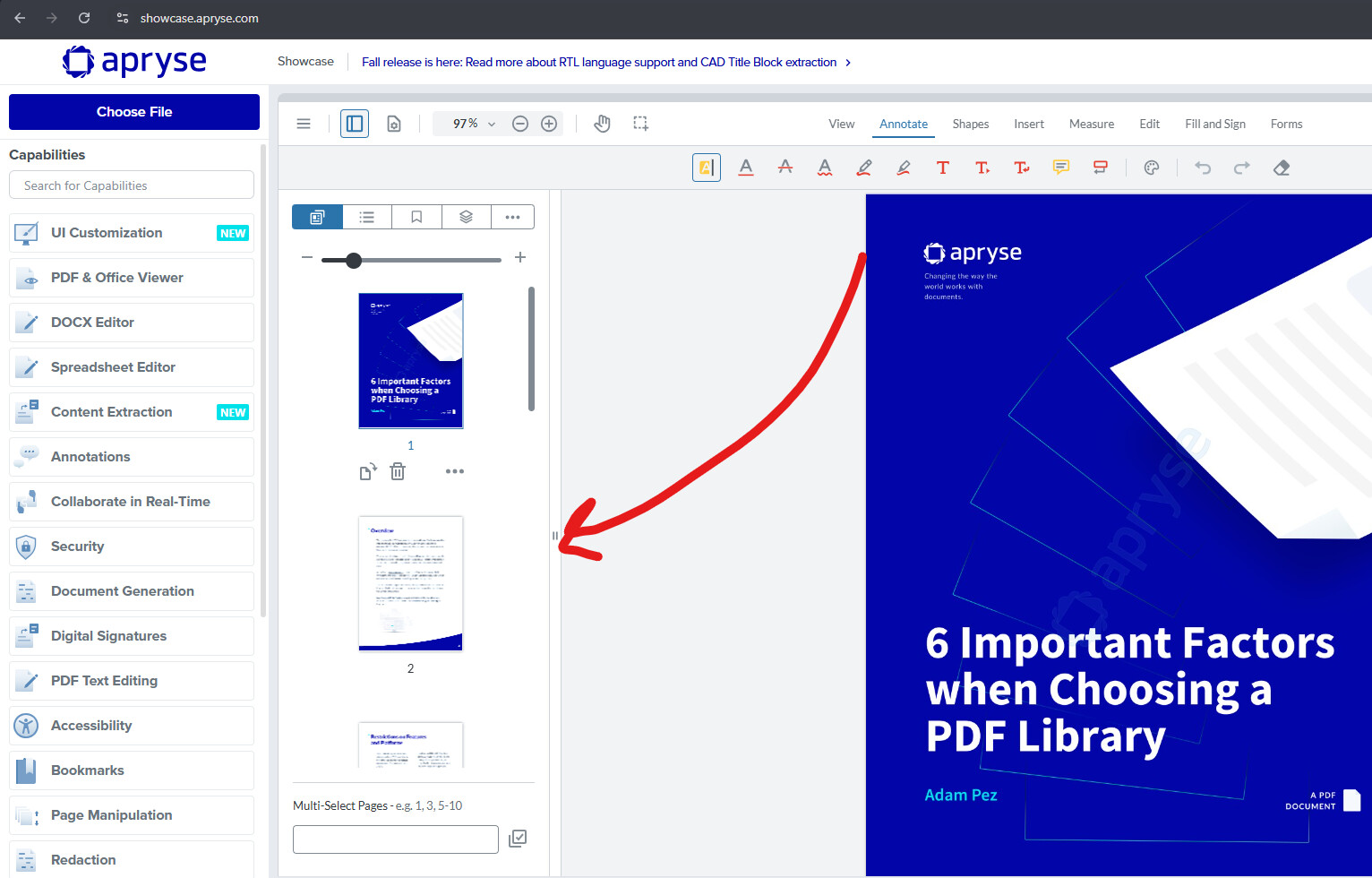 You can find our showcase demo here: https://showcase.apryse.com/.