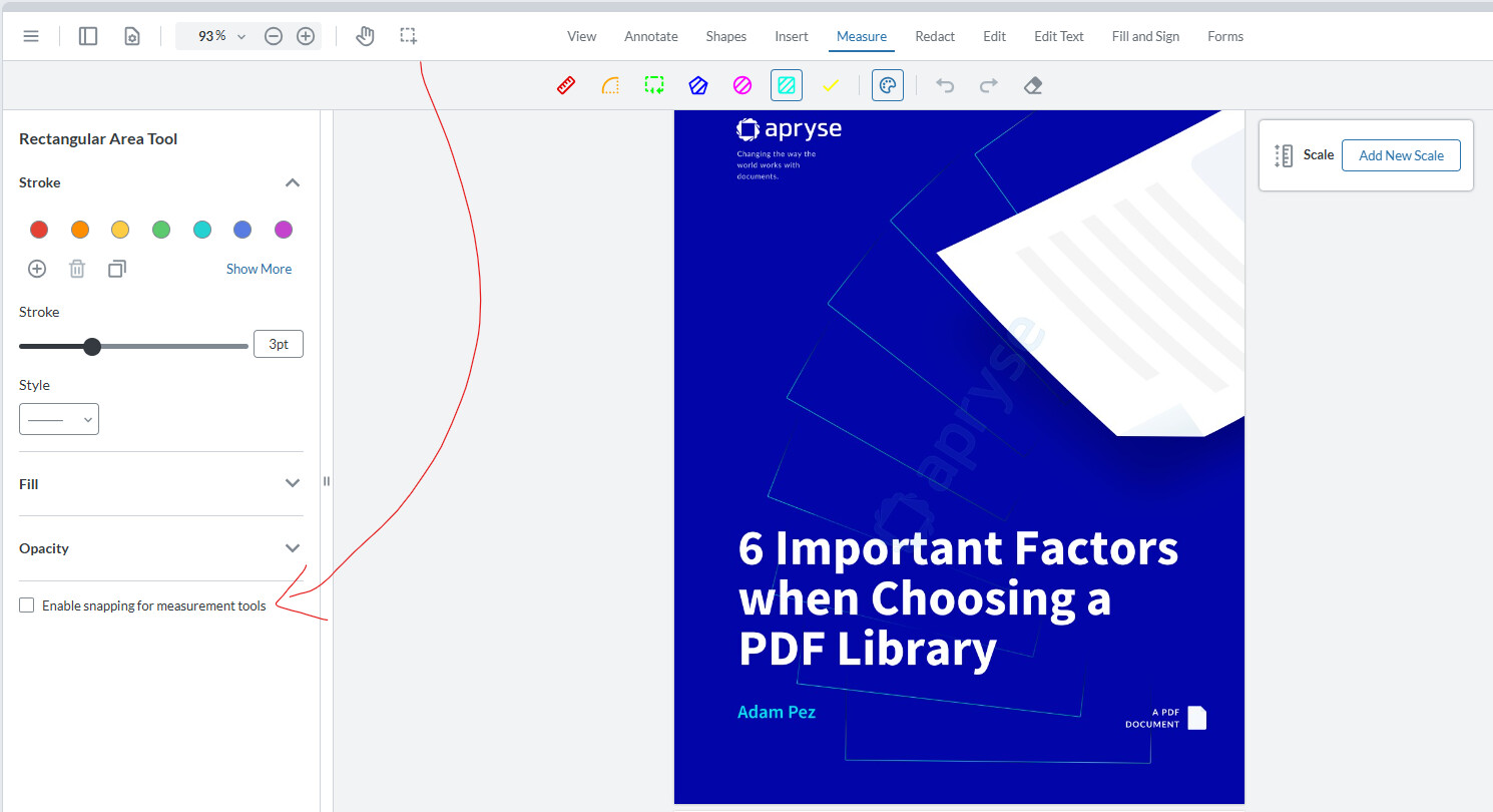 It sounds like you want to enable snapping for measurement tools programmatically when initializing WebViewer. This can be done by accessing the measurement tool properties through the WebViewer API and setting the snapping option.